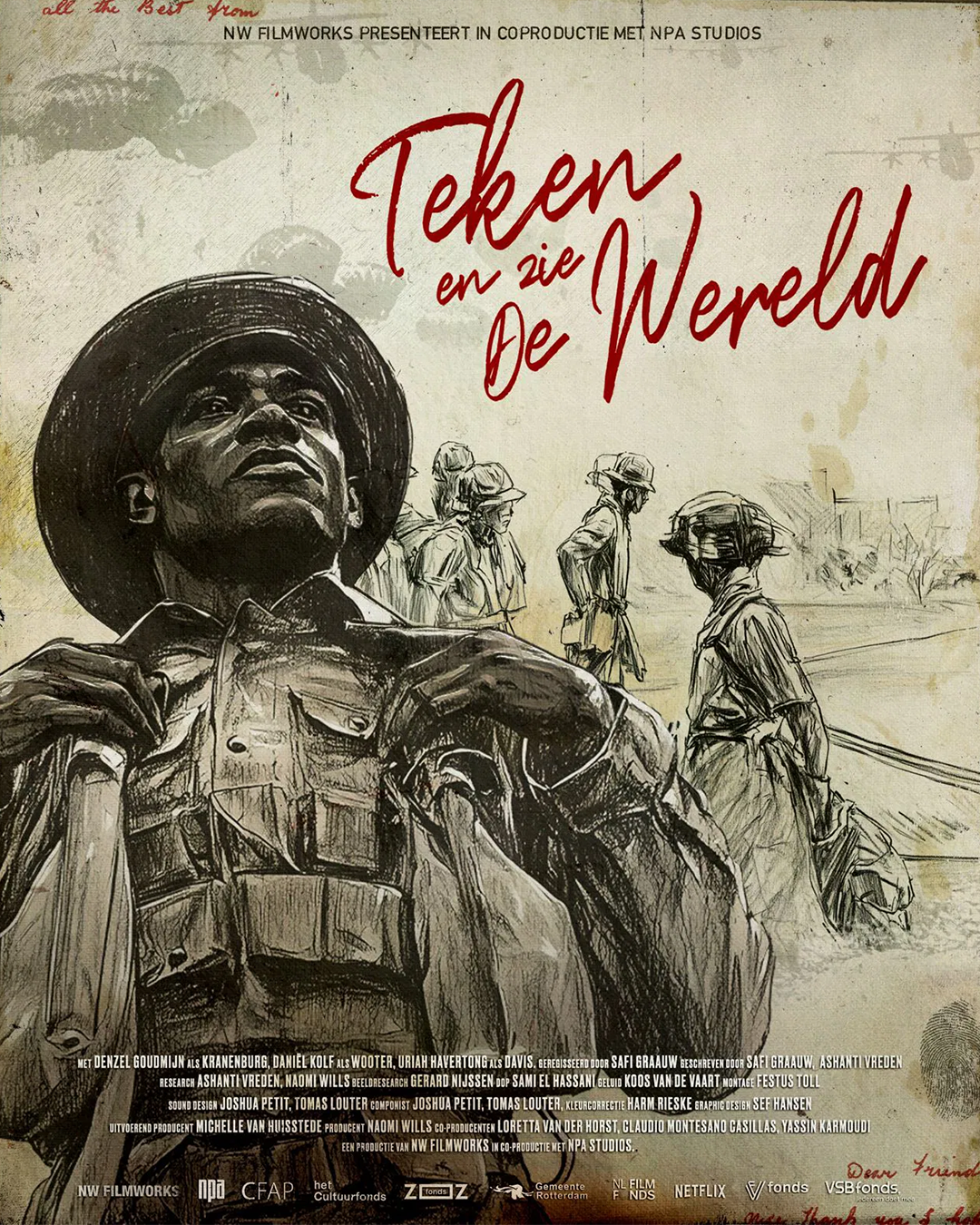 Sign and See the World (Dutch: Teken en Zie de Wereld) is a short documentary recounting the largely forgotten story of three young Surinamese men who left home during World War II to fight in Europe for the liberation of the Netherlands. Motivated by the promise of ‘sign and see the world’ and a strong sense of loyalty to the kingdom, Guillaume Kranenburg, Willy Wooter, and Harry Davis embark on their journey. They encounter discrimination within the Dutch army, which initially rejected them, and endure rigorous training in Canada and Wolverhampton. Once in Europe with the Princess Irene Brigade, they are confronted with the harsh realities of war, discovering that the adventure they envisioned is far from reality. The documentary illuminates their personal motivations, bravery, and sacrifices, revealing a forgotten chapter of history. Sign and See the World received its world premiere at the Go Short International Short Film Festival 2025, where it won both the Audience Award and Young Jury Prize, and was also selected for the Golden Calf competition.